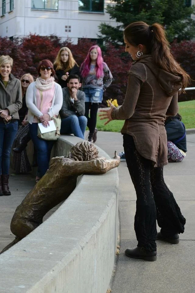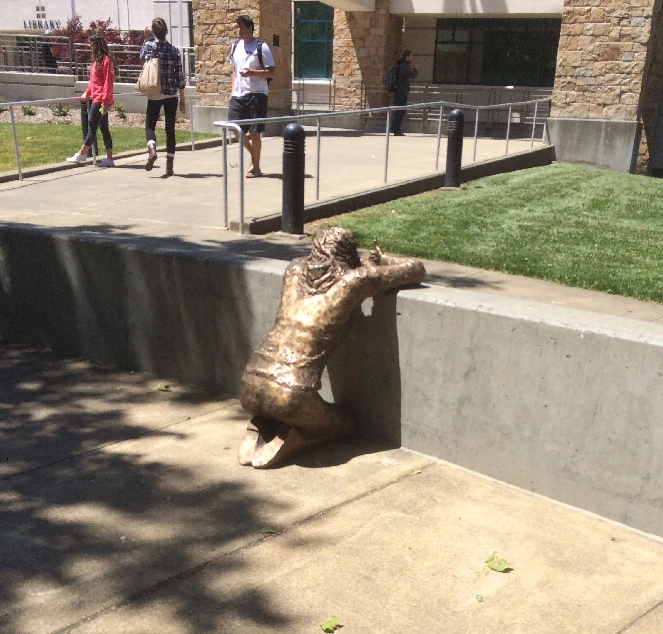 Her thumb is now the shiniest and “high polished” part of her. I intended her to be a stand for our inner child and what she has become is something so much more; the icon of good luck and hope on the college campus.